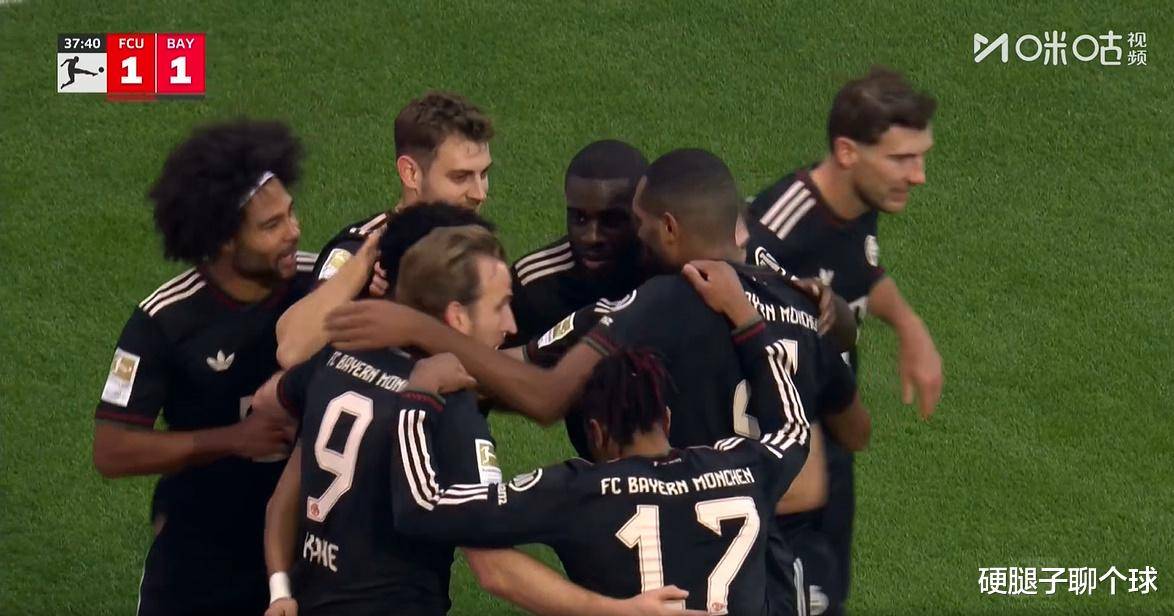 第38分钟,拜仁发起反击。迪亚斯在禁区右侧接到传球后进行了一次高难度的铲抢救球,突破了防守球员后,在几乎零度角的情况下将球弯射破门,帮助拜仁扳平了比分。