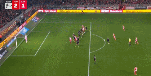 比赛的第9分钟,柏林联合险些通过一次角球机会取得领先,克尔费尔德头球摆渡,安萨在后点接应攻门,但经过VAR回放,判定安萨越位在先,拜仁幸运地逃过一劫。