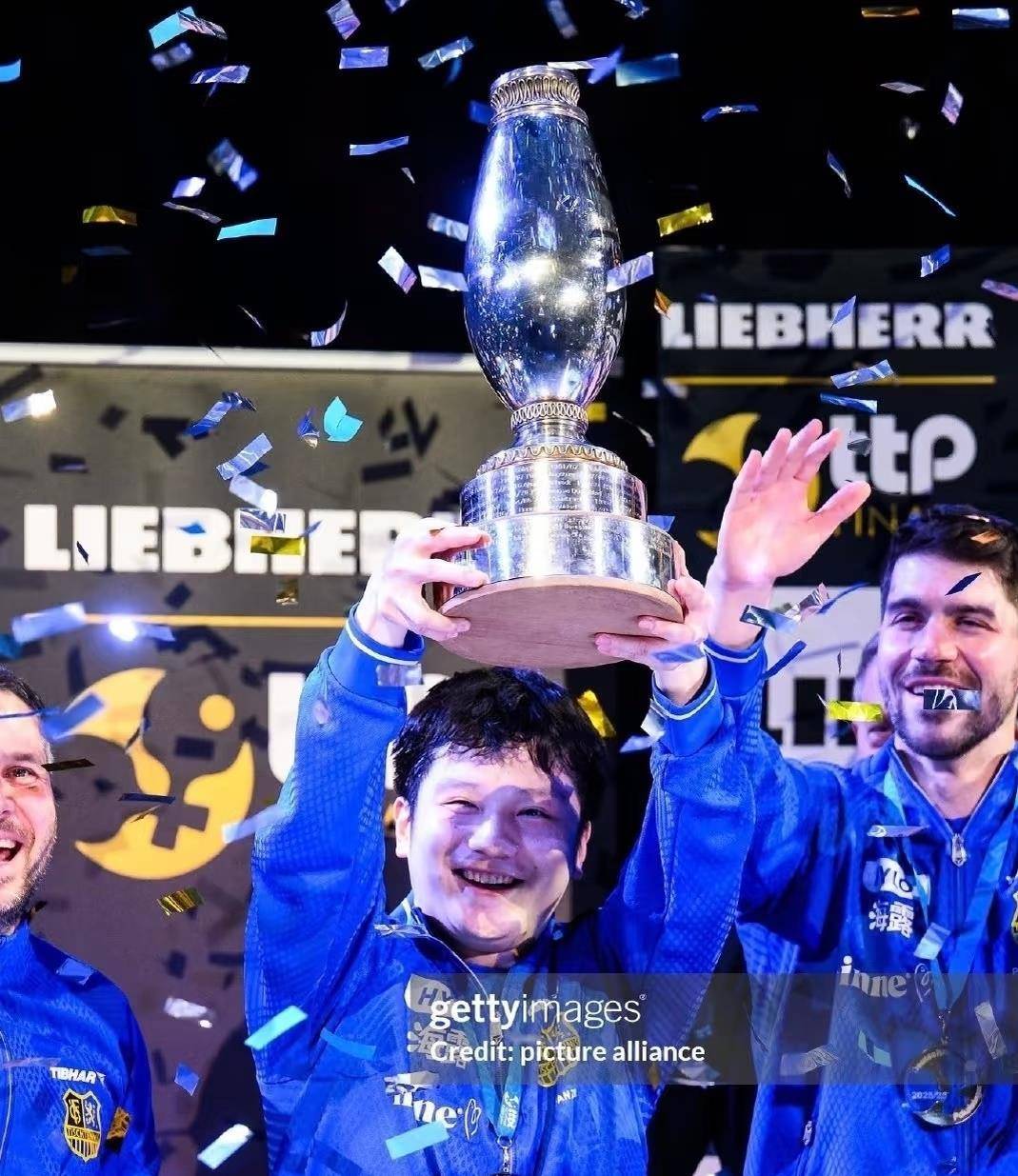 颁奖典礼上,樊振东低调地站在团队最旁边。 当嘉宾颁发奖牌时,他和弗朗西斯卡开心地聊着天。 现在的他英语流利,已经可以和国际队友无障碍交流。 最后全队一起举起奖杯时,他的笑容格外灿烂。 这个德国杯MVP奖杯,是对他这几个月努力的最好回报。