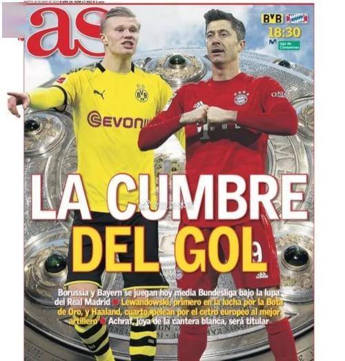 一旦明日凌晨的比赛,拜仁被“大黄蜂”击败,德甲班霸的领跑优势就只剩1分,所以,就连西班牙媒体封面,也高度关注这场“德甲国家德比”,《阿斯报》整版封面,标题“进球峰会”,强调德甲即将迎来重头戏,多特蒙德对阵拜仁,哈兰德VS莱万多夫斯基,等着看好戏吧。返回搜狐,查看更多