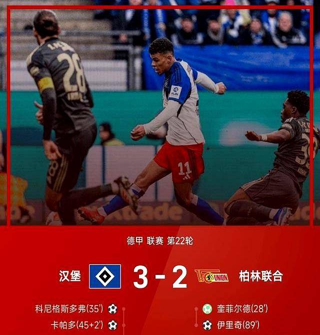 汉堡与柏林联合的保级生死战,其跌宕起伏的剧情丝毫不逊色于勒沃库森的狂胜。奎菲尔德开场不久便利用点球为柏林联合取得领先,现场球迷一片欢腾,然而,科尼格斯多弗迅速扳平比分。补时阶段,卡帕多的抽射反超,瞬间点燃了主场观众的热情,将整个球场变成了沸腾的油锅。下半场,柏林联合展开疯狂的反扑,科恩的任意球击中立柱,让汉堡门将惊出一身冷汗。然而,科尼格斯多弗才是真正的英雄,他梅开二度,为汉堡锁定胜局,甚至连场边的教练都激动地跪地挥拳庆祝!尽管伊里奇在比赛尾声扳回一球,但3-2的比分还是让汉堡艰难地延续了六轮不败的纪录,在保级道路上赢得了一丝喘息之机。