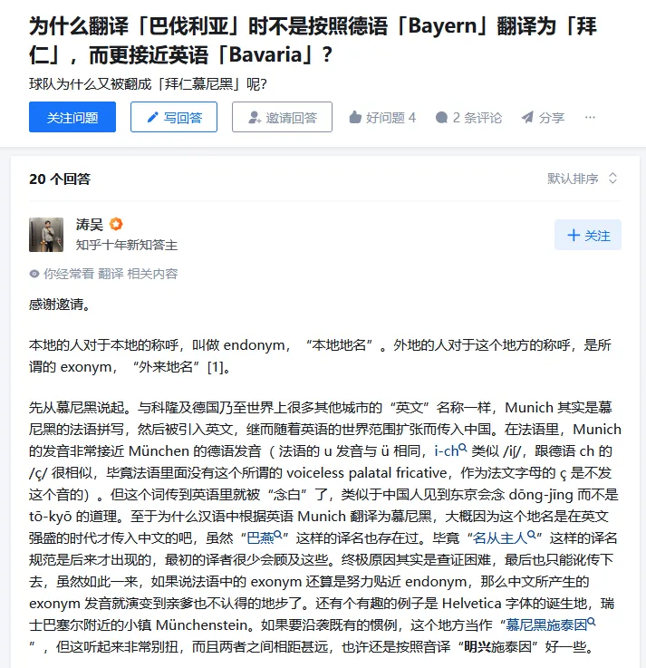 [2]为什么翻译「巴伐利亚」时不是按照德语「Bayern」翻译为「拜仁」,而更接近英语「Bavaria」?. 知乎.