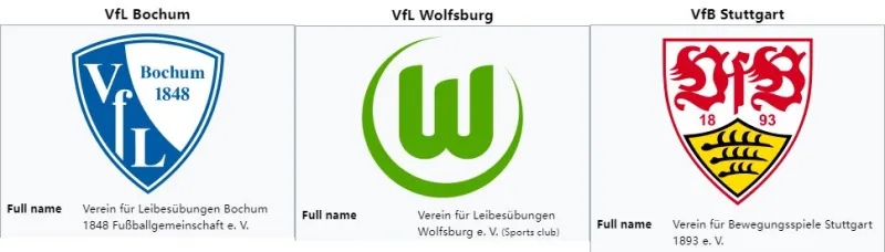 德甲球队的名字乍看之下很复杂,但其实还蛮好理解的。我们还是先讲几个德语词汇和缩写的意思: