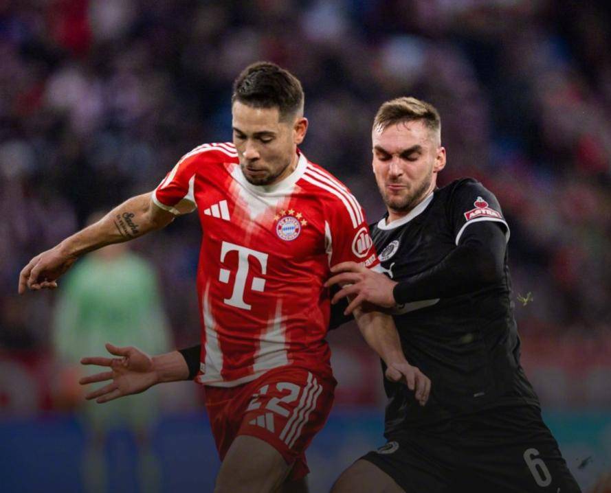 对于平局不满的孔帕尼,下半场率先做出换人调整,用奥利塞替换下了莱默尔,第58分钟奥利塞开出的角球,精准找到了若纳坦塔,后者的头球攻门威胁十足,擦着远侧立柱出了底线分钟奥利塞右路拿球推进,随后挑传左路后点,可惜包抄的迪亚斯没有能够碰到皮球,第82分钟凯恩禁区内的小角度打门,又一次被主场门柱拒绝,比赛最后时刻,拜仁大举压上围攻圣保利,伤停补时第93分钟,基米希右路传中,迪亚斯门前头球一蹭,终于攻破了圣保利门将的十指关,将比分反超为了2-1,随后替补登场的杰克逊也锦上添花,将比分定格为了3-1。